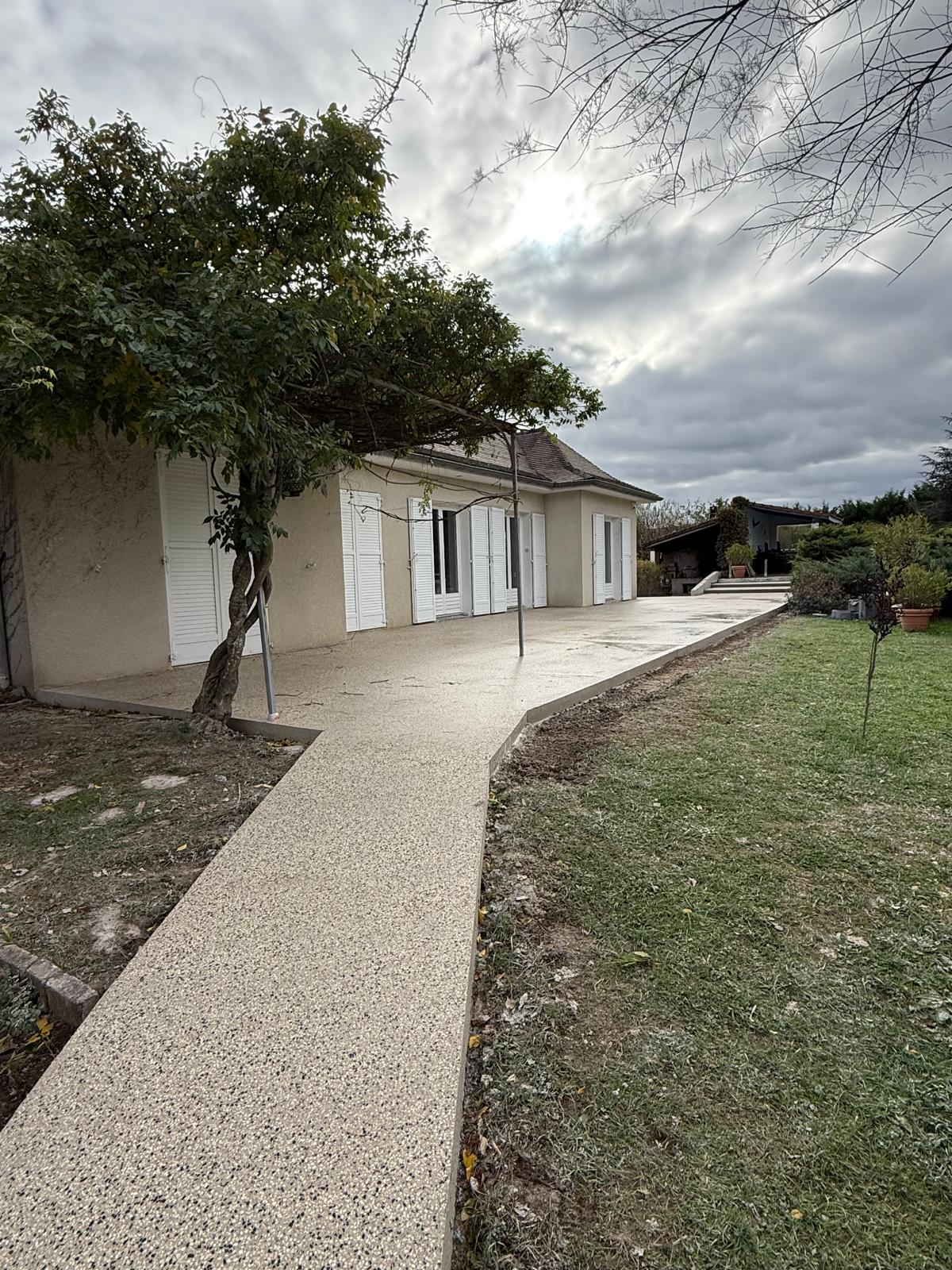 La réalisation d’un béton désactivé consiste à créer une surface esthétique et durable en faisant apparaître les granulats du béton grâce à un traitement spécifique. Ce procédé offre un aspect naturel, antidérapant et particulièrement apprécié pour les allées, terrasses, trottoirs ou abords de piscines.